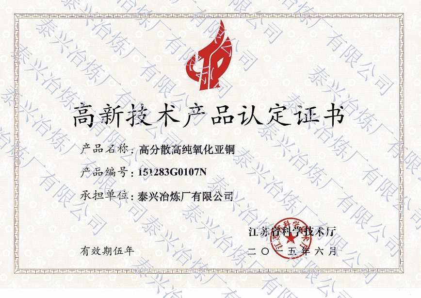 氧化亞銅生產歷史悠久,技術和規模在全 國均處于領先地位